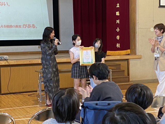 まず、6年生の最近の休み時間の過ごし方を振り返り、暑くなると、熱中症が心配だと気づきます。その後、ゲストティーチャーとして渋谷消防署恵比寿出張所長から、熱中症の事例や気温や時期、かかる年齢などの基本的なことを教えていただきました。