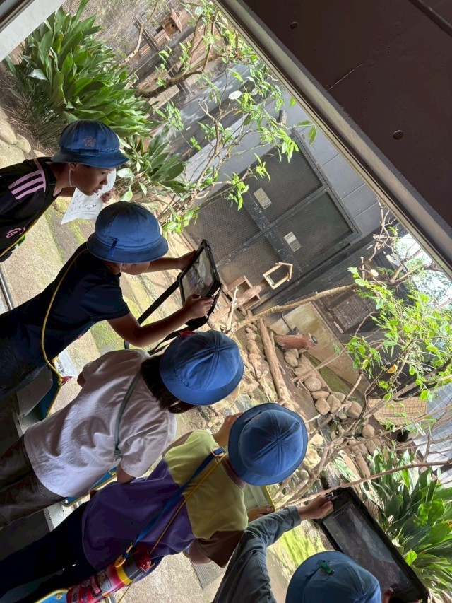 2年生活科見学 公開日 2025/05/10 更新日 2025/05/10 学校日記 5月8日、よい天気の中、2年生が井の頭自然文化園に生活科見学に行きました。グループに分かれ、いろいろな動物を見てまわりました。タブレット係の子が写真を撮ったり、しおりの中にある動物の特徴ビンゴをしたりしながら楽しく見学しました。お昼のお弁当後は井の頭公園の池の周りをのんびり歩き、様々な生き物を見つけました。今後、学校でグループごとにまとめをします。新緑がまぶしく、気温もちょうどよい見学でした。 +2