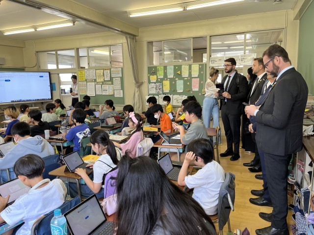 子供達の様子を見て、音楽や図工、タブレット、英語の学習を参観しました。