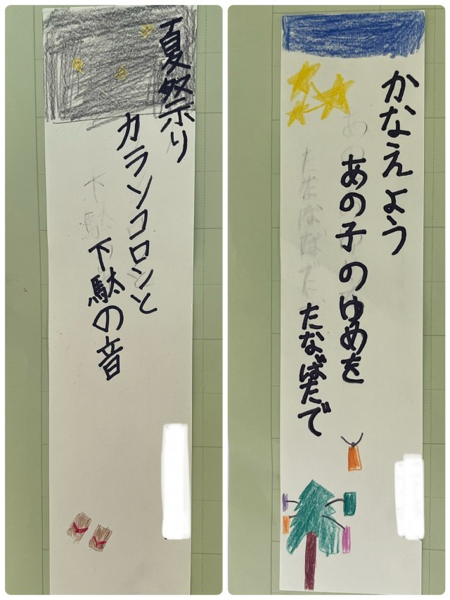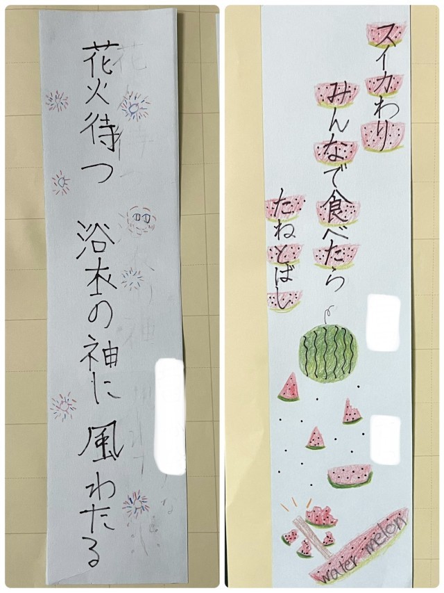 教科書「夏の楽しみ」単元の中で、夏の行事の様子やその時の思いを、季語を使って表そうと挑戦してみました。