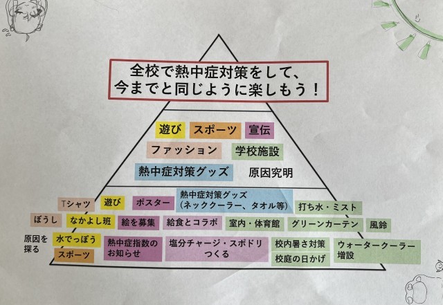 今まで様々な熱中症対策を考えてきて、今日は実際に自分たちができる具体策を考えました。