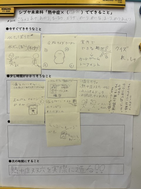 6年生がシブヤ未来科で、めざせ!熱中症対策インフルエンサーの学習をしました。この日は都内のいろいろな学校から約30人もの方々が参観にきました。