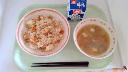 今日は、給食ではおなじみ「こぎつねごはん」です。
