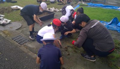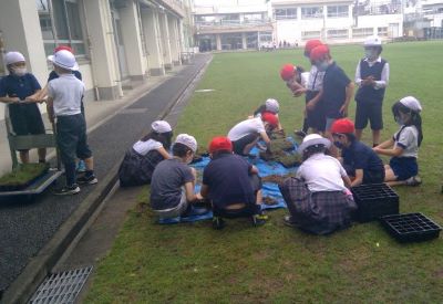 6月には、夏芝の苗を植える体験をしました。7月には、育てた苗の植え替えをする予定です。