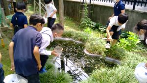 「虫はどこに隠れているんだろう?」とかくれんぼをしているように虫を探していました。見つけた虫は虫かごに入れて、中の環境を整えたり、餌を与えたりして大切に育てています。