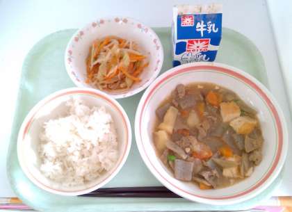 給食で使っているお米は、秋田県産のあきたこまちです。忠犬ハチ公誕生の地である秋田県の大館市より直送してもらっています。