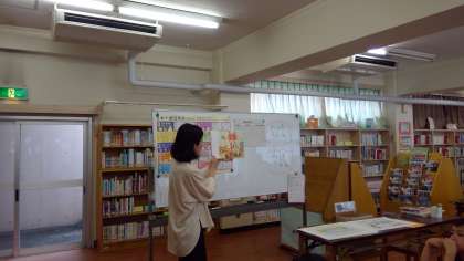 司書の先生が、図書室のルールや本の借り方、返却の仕方を紙芝居にして丁寧に説明してくれました。
