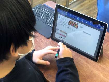 オクリンクという学習ソフトをワークシートとして活用しながら、それぞれが課題解決に向かっていました。アナログとデジタルのそれぞれのよいところを取り入れながら、学習を進めています。