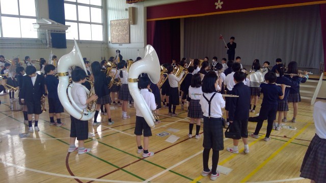 長谷戸小学校では、5~6年生の児童全員がブラスバンドに入り、朝会やブラスバンドの時に演奏をします。