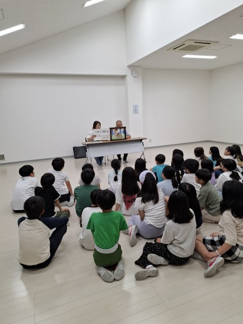 河津ふるさと案内人の方より、河津町に伝わる伝承昔話の紙芝居を聴きました。ハイキングに行く河津七滝に伝わる伝承昔話もありました。
