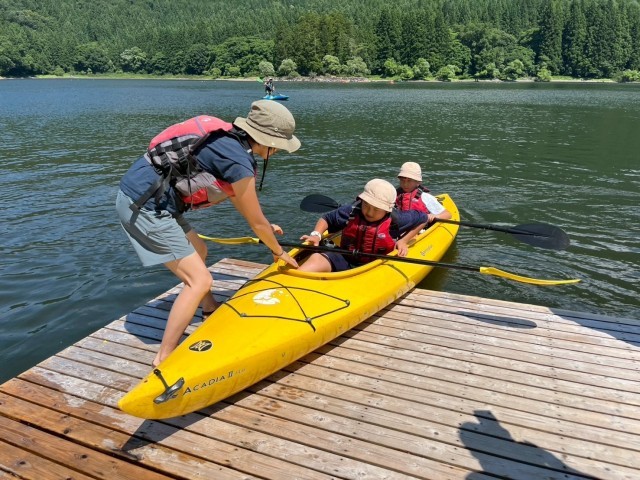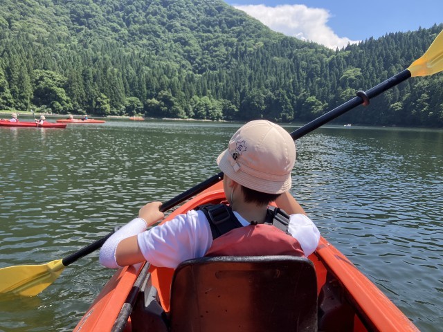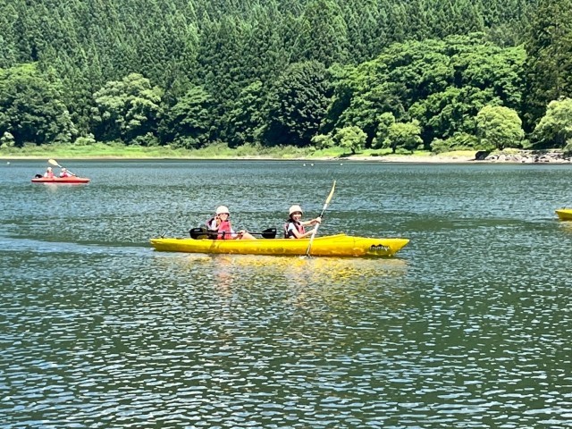 カヌー始まりました。暑いので湖畔のハイキングはやめて1組→2組と宿での休憩をしながら、順番に実施することになりました。初めての子が多いのですが、みんなすぐに慣れて楽しんでいました。