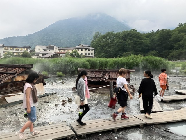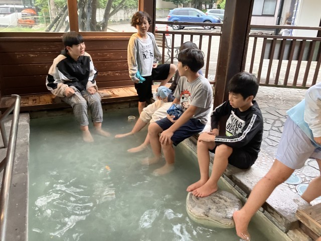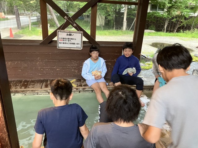 食後時間はナイトハイクとして、足湯に入り、源泉を見学し、夜の湖畔を散歩して帰りました。途中シカにも会えました。充実した2日目が終わります。