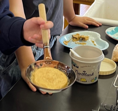 【科学クラブ】カルメ焼き作り 公開日 2025/11/21 更新日 2025/11/21 お知らせ 今日の科学クラブでは「カルメ焼き作り」を行いました。以前はうまくできませんでしたが、今回は上手に作れたグループも出てきて、みんなでおいしく食べました!