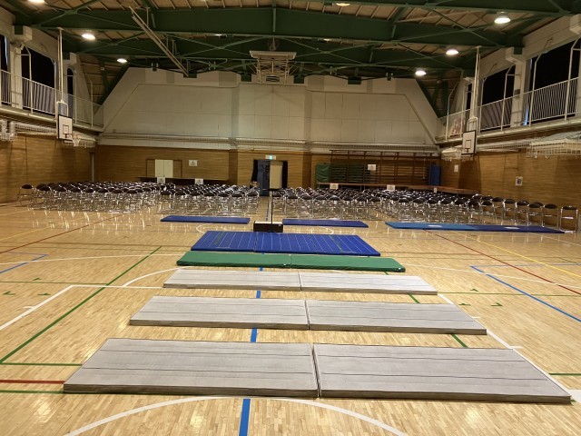 1枚目の写真はマット席です。第1部が4年、5年、第2部が1年、2年、3年、第3部が6年の保護者優先席になりますので、譲り合ってご使用ください。