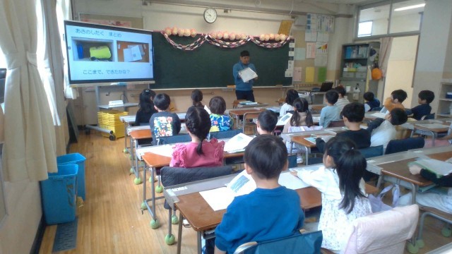 入学して一週間が経ち、子どもたちは少しずつ学校生活に慣れてきました。下駄箱では、くつの入れ方や傘のしまい方を一つ一つ確かめながら取り組んでいます。ランドセルロッカーの使い方も覚え、朝の準備が上手になってきました。国語や算数の時間には、たくさんの子が「はい」と元気に手を挙げて発表する姿が見られています。今週からは図工の授業も始まり、楽しそうな表情があふれていました。また、毎朝6年生がお手伝いに来てくれ、優しく声をかけてくれています。みんなが素敵なスタートを切ることができました。これからの成長がとても楽しみです。