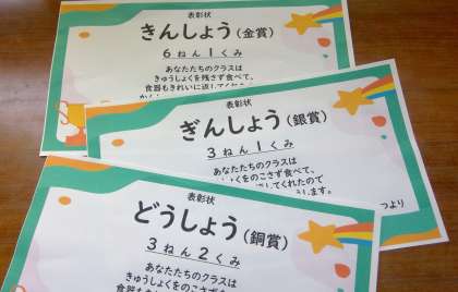 受賞したクラスには、感謝の気持ちを込めて表彰状をプレゼントしました。これからもたくさん食べて元気に過ごしてくださいね。