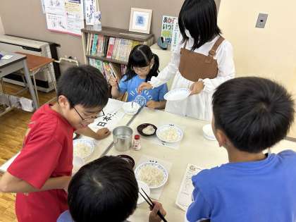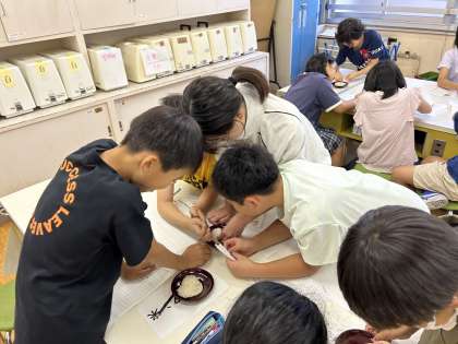 総合の学習で、日本の米をもっと多くの人に食べてもらうをゴールに学習しています。