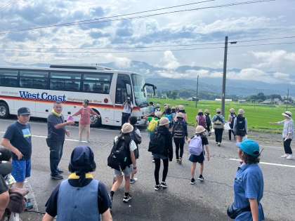 【5年生】飯山自然体験教室18 公開日 2024/07/25 更新日 2024/07/25 お知らせ 退村式を終え、宿の方とお別れをしました。宿の皆様のおかげで素敵な3日間を過ごすことができました。これから小布施総合公園に向かいます。