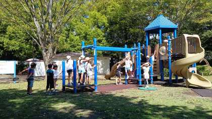 気温が高く、子どもたちは汗びっしょりになりましたが、グループで活動することで一段と楽しさが増していました。お昼にはみんなでお弁当を食べ、その後は遊具で思いきり遊びました。笑顔が絶えず、友達と過ごす時間を心から楽しんでいる様子が見られました。