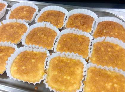 おはなし給食とは、絵本に出てくる食べ物を再現した給食です。今日は「ぐりとぐら」という絵本に出てくるカステラを再現して作りました。ぐりとぐらは、料理することや食べることが大好きな野ネズミです。ある日、二匹は食材探しに森の奥へと出かけました。そして、大きなカゴにドングリや栗を拾い集めていると、予想外のものを発見するのでした…。続きは図書館で本を借りて、ぜひ読んでみてくださいね。