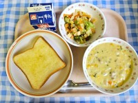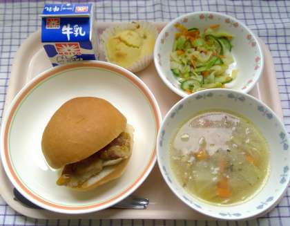 今日は食べやすいメニューだったようで、ほとんどのクラスが残菜なしでした。特に照り焼きチキンサンドとりんごのケーキが人気でした。