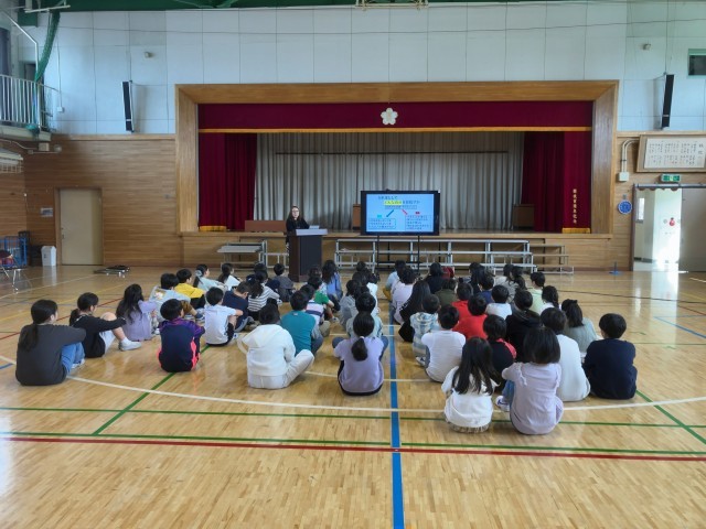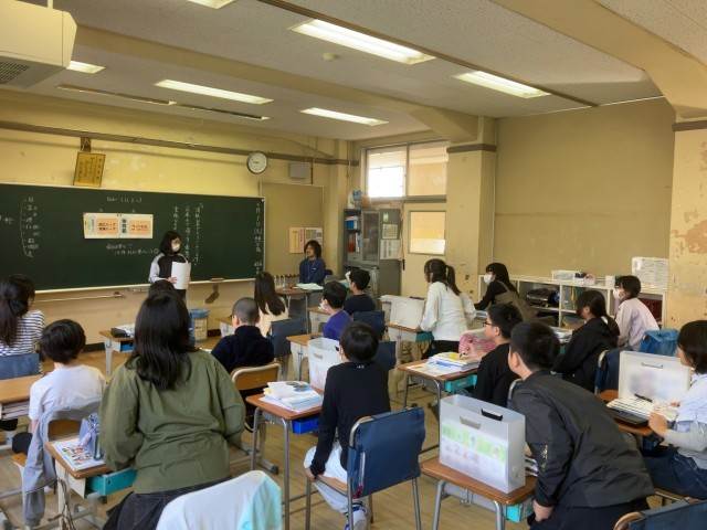 4年生は1クラス、56年生は2クラスです。4〜6の上学年はさすが話すことが立派です。5年生は体育館に学年で集まってからのスタートでした!
