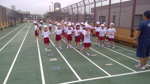 屋上に上がると、その広さに驚く声が上がり、「かけっこできる!」と元気に遊ぶ姿が見られました。