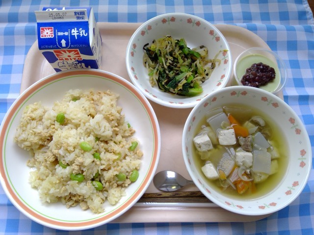 5月1日は「八十八夜」、そして「緑茶の日」です。八十八夜は、立春から数えて88日目にあたる日で、新茶の季節の始まりを知らせる大切な日です。今日はお茶の日にちなんで抹茶寒天を作りました。抹茶は苦いからやだ!という子やあんこは嫌い!という子が多く、そこそこな量が残ってかえってきてしまいました・・・