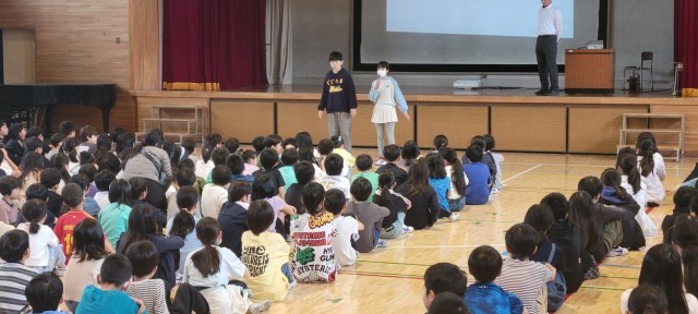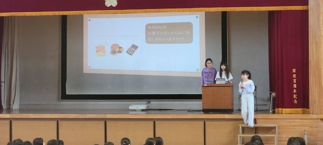 本日の朝会では、まず6年生の代表が挨拶と先週の広尾小の良かったところを発表してくれました。下級生の良かったところをしっかりと見つけてくれていて立派です。その次に、4年生の3人がお菓子について発表してくれました。自分たちの調べたことを協力して、楽しく発表することができました。影響を受けた児童も多いようで、今日はたくさんの児童が校長室に発表したいと言いに来てくれました。最後に実習生の紹介がありました。6月6日までの実習になりますので、よろしくお願いします。