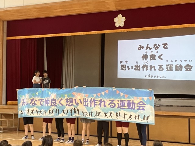運動会の練習を各学年頑張っているところですが、5月19日(月)の全校朝会で運動会のスローガンの発表が代表委員会からありました。まず初めに6年生から挨拶と広尾小学校のいいところの発表があった後に、代表委員会からの発表がありました。みんなから集まった言葉のなかでは、楽しく、仲良く、などの言葉が多かったことから、その言葉をもとにスローガンがつくられたことの説明がありました。今年のスローガンは『みんなで仲良く想い出作れる運動会』です。良い想い出につながるよう、頑張っていきます。