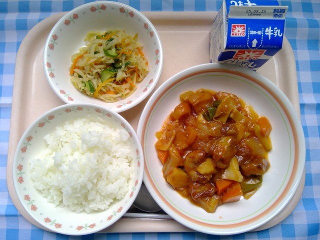 酢豚はピーマンや人参が大きく入っていて苦手な子が多いですが、「お肉と一緒に食べたらピーマンも食べられた!」と一年生が元気に報告してくれました!ピーマンの食べた数を競っていて、ほほえましかったです。この調子でいろいろな食べ物に挑戦してほしいですね!