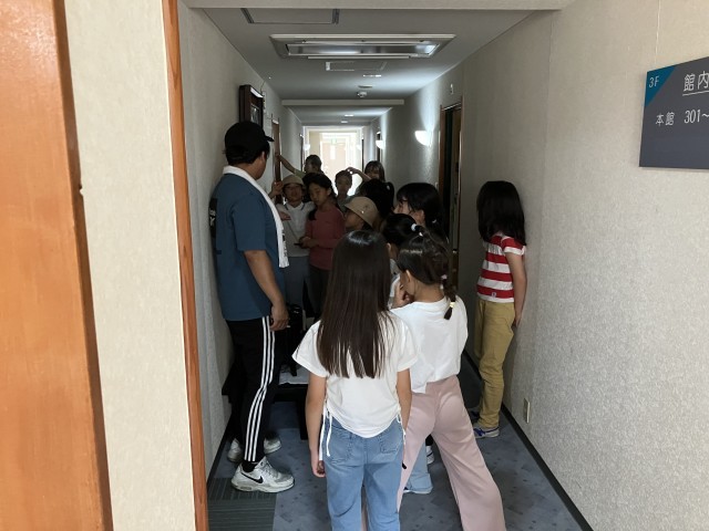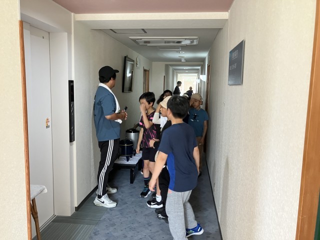 河津さくらの里しぶやについに到着しました。入所式で宿の方に挨拶をしたら、部屋で荷物整理と避難訓練をしました。