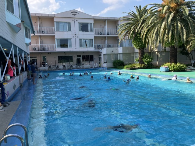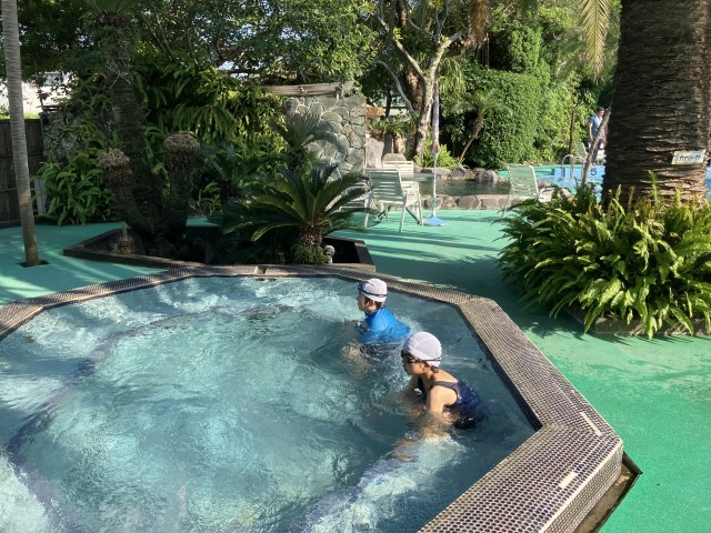 噴湯公園でびしょ濡れになってからの、お楽しみのプール!ジャグジーもあります。