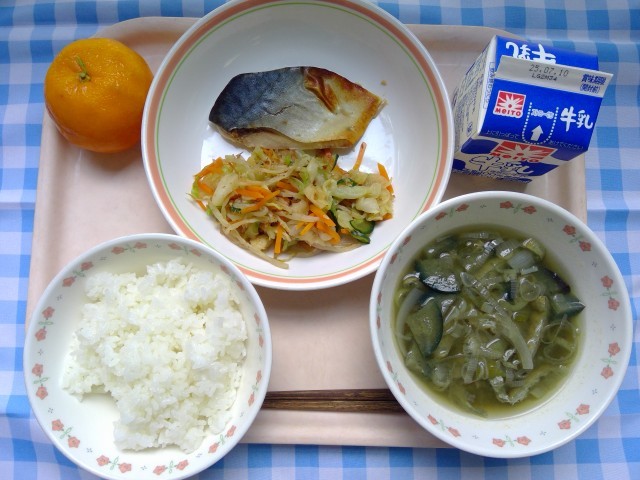 今日の給食のみそ汁には、夏野菜の茄子を入れました。幼稚園では茄子を育てていたらしく、積極的に食べてくれました!デザートの冷凍みかん、届いたばかりでまだ冷たく、「歯にしみる~」と食べている子もいました。おかわりもとってもにぎやかで、廊下にじゃんけんの声がよく聞こえました!