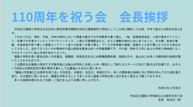 猿楽小学校の未来を想う会(110周年実行委員会)