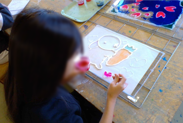 今回絵を描くのに使うのはボンド!線がぷっくりするように、力加減を調整しながら線を描いていきます。