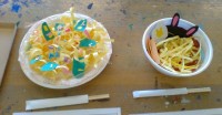どんな麺メニューがあるのか、みんな興味深々。お客さんになった人は友達の新メニューのいいところをたくさん見つけることができました。