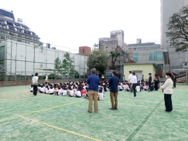 地震を想定した避難訓練を実施しました。1年生は、見学をして、避難訓練後に担任の先生と振り返りをしました。「どうだったなか。」「みんな黙ってた。」「かっこよかった。」等のやり取りがありました。お兄さん、お姉さんの姿を見てしっかり学ぶことができました。
