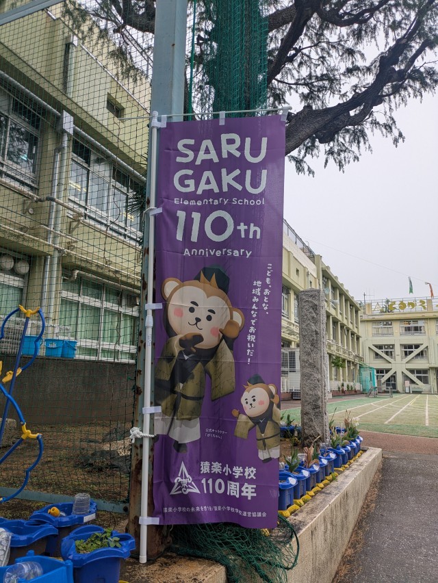 本日は110周年実行委員会を開催いたしました。保護者の皆様、地域の皆様のおかげで5月の児童集会・バルーン飛ばし・地域への広報等が進められています。心より感謝申し上げます。のぼり旗も完成し、到着しましたのでさっそく正門と南門に設置しました。3Dの「がくちゃん」や全体のデザインがとてもすてきなため、近所の方にもお褒めの言葉をいただきました。