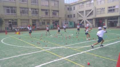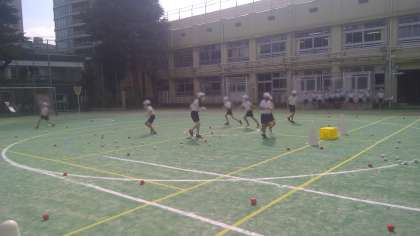 写真は「源玉合戦」の練習の様子です。5月の練習から期間が空いたので、ルールや動き方を思い出しながら行いました。