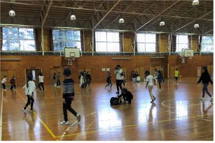 学校の3倍の大きさの体育館で思い存分レクリエーションを楽しんでいます。
