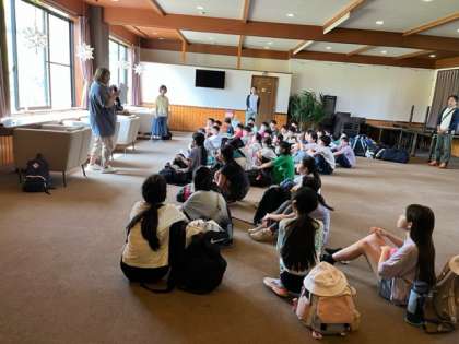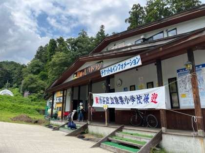 宿のお父さん、お母さんに温かく迎えられ、入村式を行いました。各宿のお部屋に入り、小休憩してからハイキングに出かけます。