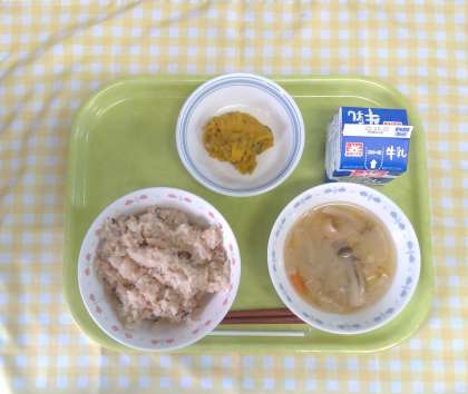 ツナご飯 かぼちゃのサラダ 田舎汁 牛乳