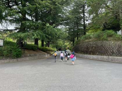 4人1組の縦割り班で、4年生のリードでお楽しみポイントを回っています。