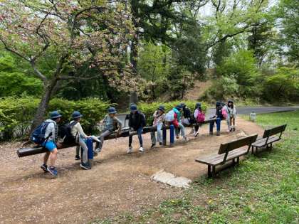 ビックシーソーで盛り上ったり、満開の八重桜を眺めたりして楽しんでいます。