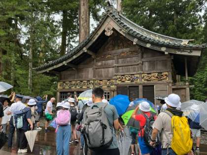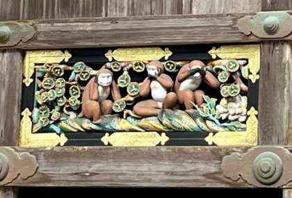 「見ざる 言わざる 聞かざる」の三猿のエピソードを聞きました。この移動教室は猿楽流で「言う猿 見る猿 聞く猿」の三猿で楽しみたいと思います。