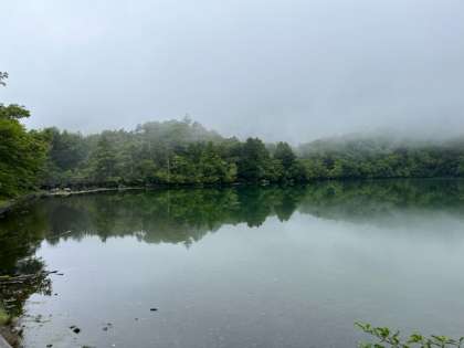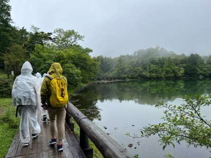 ハイキング、小休止です。みんな元気です。光徳牧場のアイス目指して歩きます。