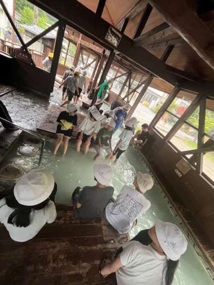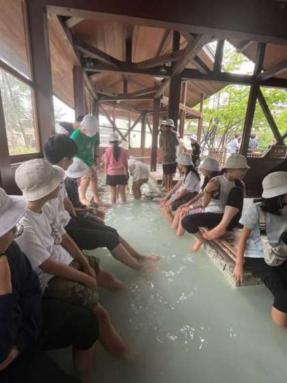 あんゆの湯では、ハイキングで疲れた足を癒しました。最初は熱かったお湯が、つかっているうちに程よく、足がピンク色になりました。