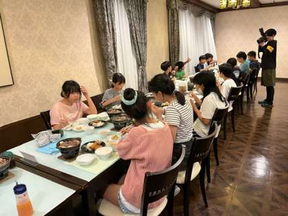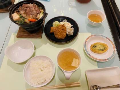 温泉に入ったあとの夕食はお肉たっぷりの牛すき焼きやヒレカツがメインで湯葉のスープなど美味しくいただきました。