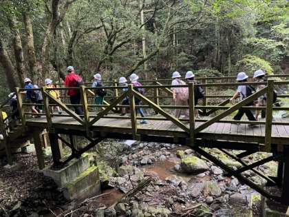 七滝巡りハイキングです。班ごとにガイドさんが付いて、巡ります。